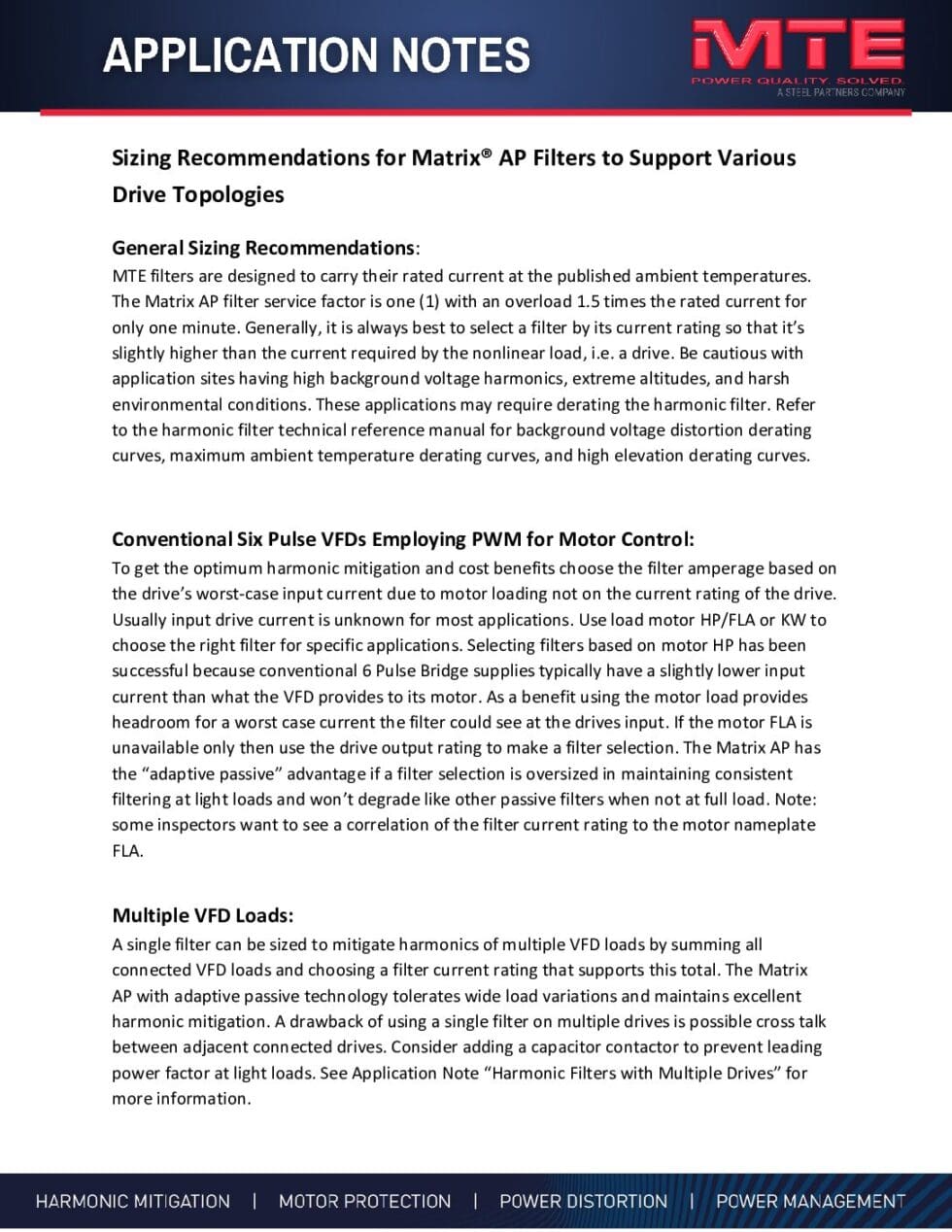 Sizing Matrix AP Filters App Note | MTE Corporation