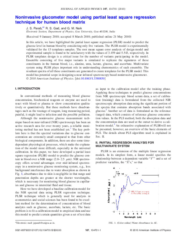 (PDF) Noninvasive Glucometer Model Using PLSR technique for Human Blood ...