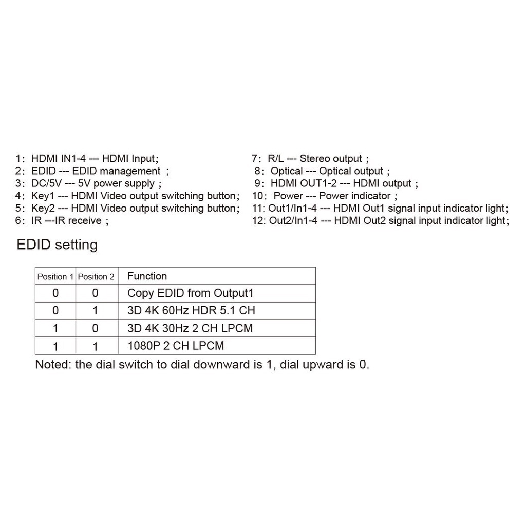 HDMI Matrix 2x2 4x2 Matrix HDMI Switcher 4 in 2 Out with Optical 3.5mm ...