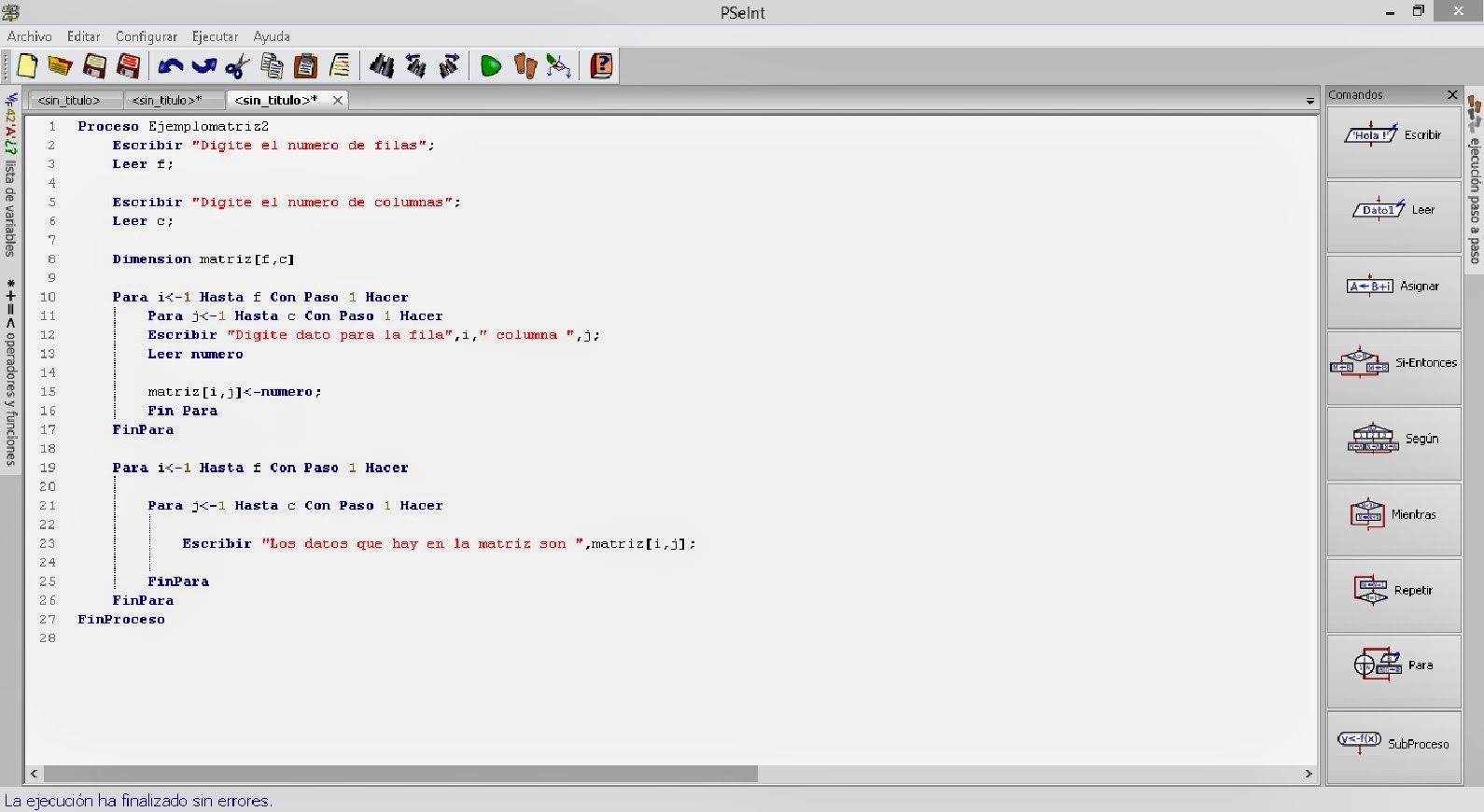 Pseint: Aplicación de las Matrices o Arreglos Bidimensionales » TriSabio