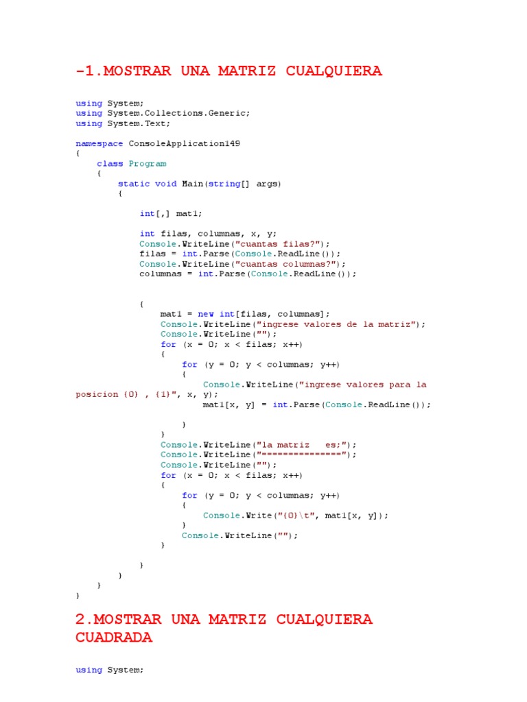 Matrices y Programación Básica | PDF | Estructura de datos de matriz ...