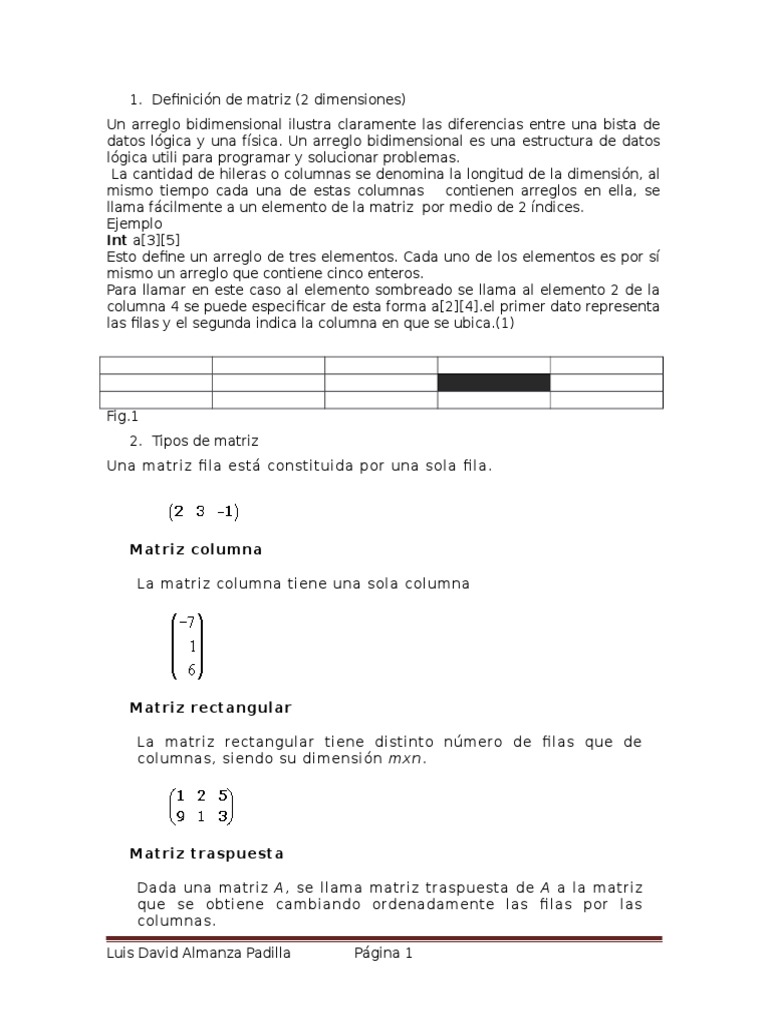 Matrices en Programacion | PDF | Matriz (Matemáticas) | Estructura de ...