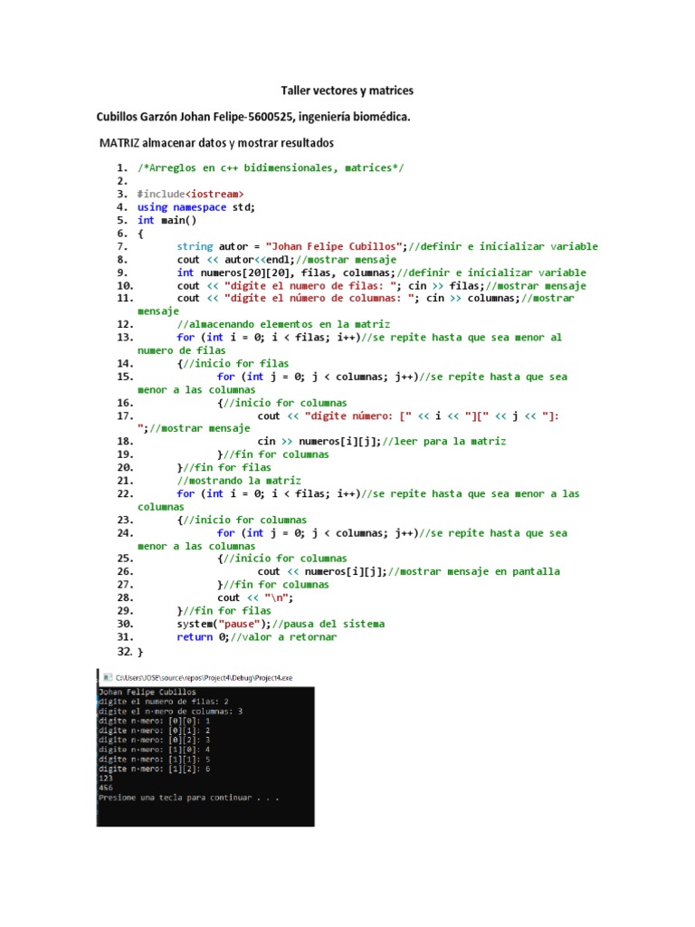 Arreglos bidimensionales (matrices) y sus aplicaciones | PDF ...