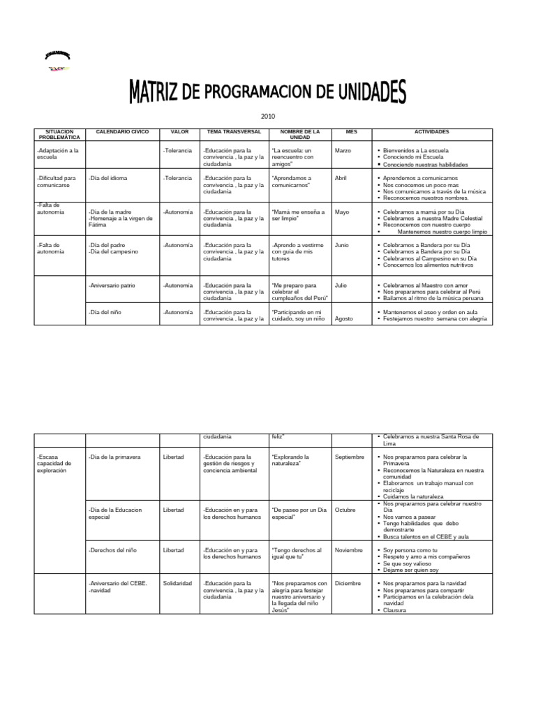Matriz de Programacion Unidades | PDF