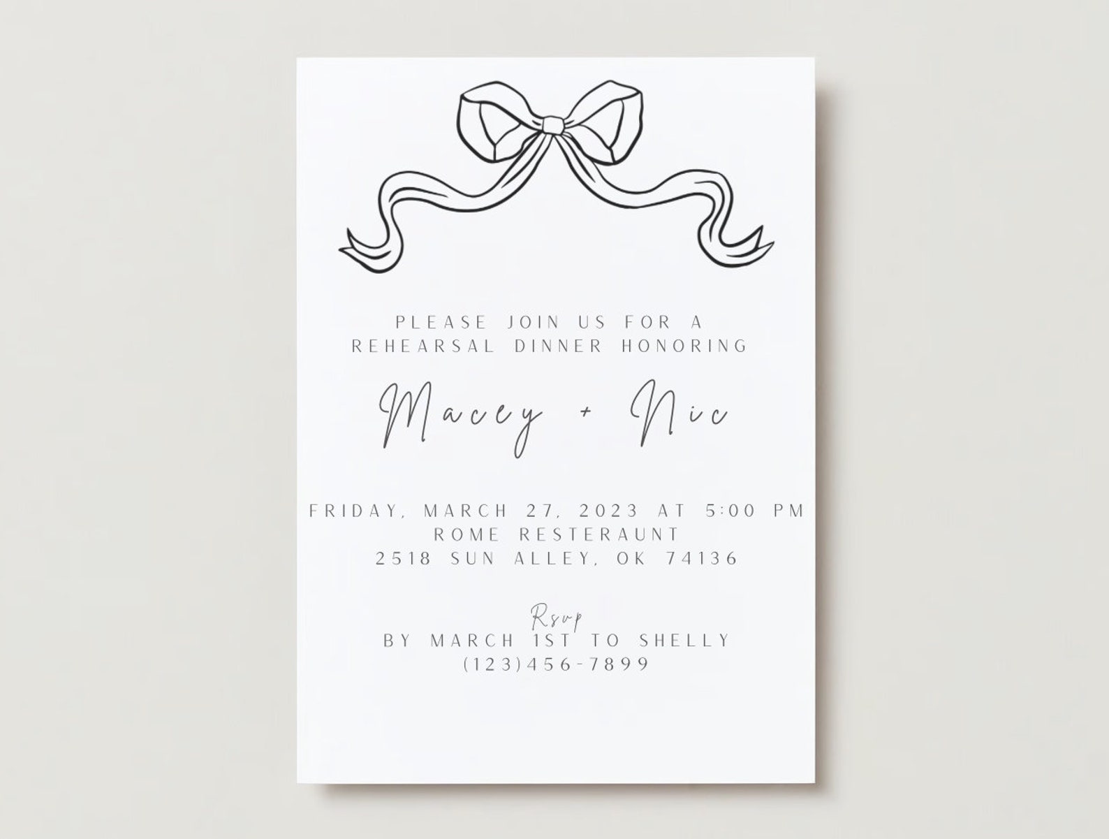 Rehearsal Dinner Invitation Minimal Classic 5x7 Matte Finish Premium ...