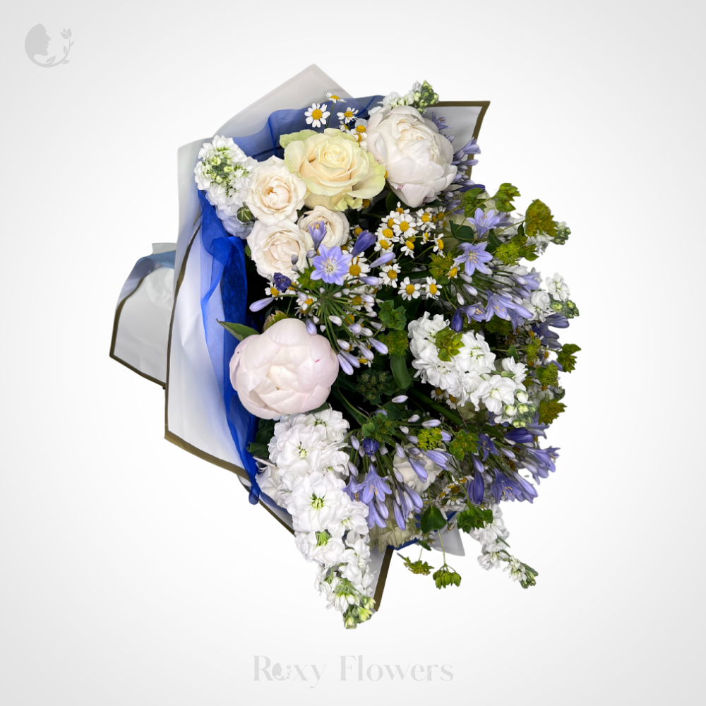 Buchet floral cu trandafiri, matthiole și bujori - Liniștea Valurilor ...