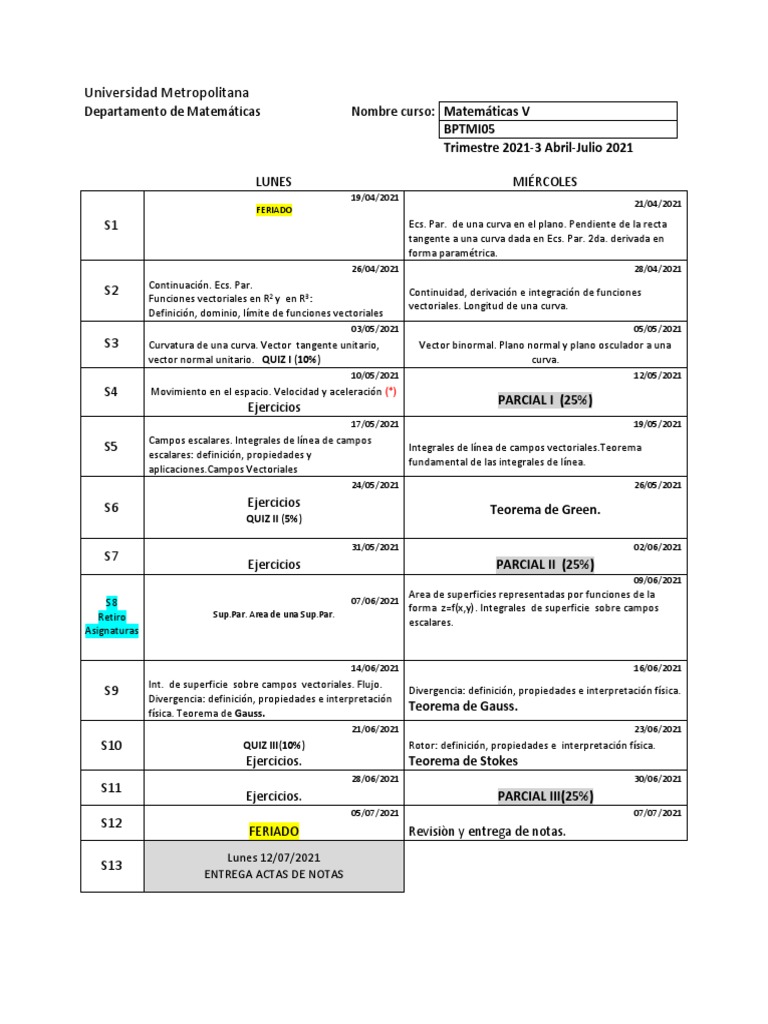 Cronograma MatV 2021-3 | PDF | Vector Euclidiano | Integral