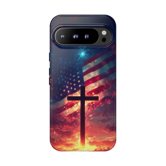 Christian Cross USA Flag Protective Case for iPhone 11 up to 17 Pro Max ...