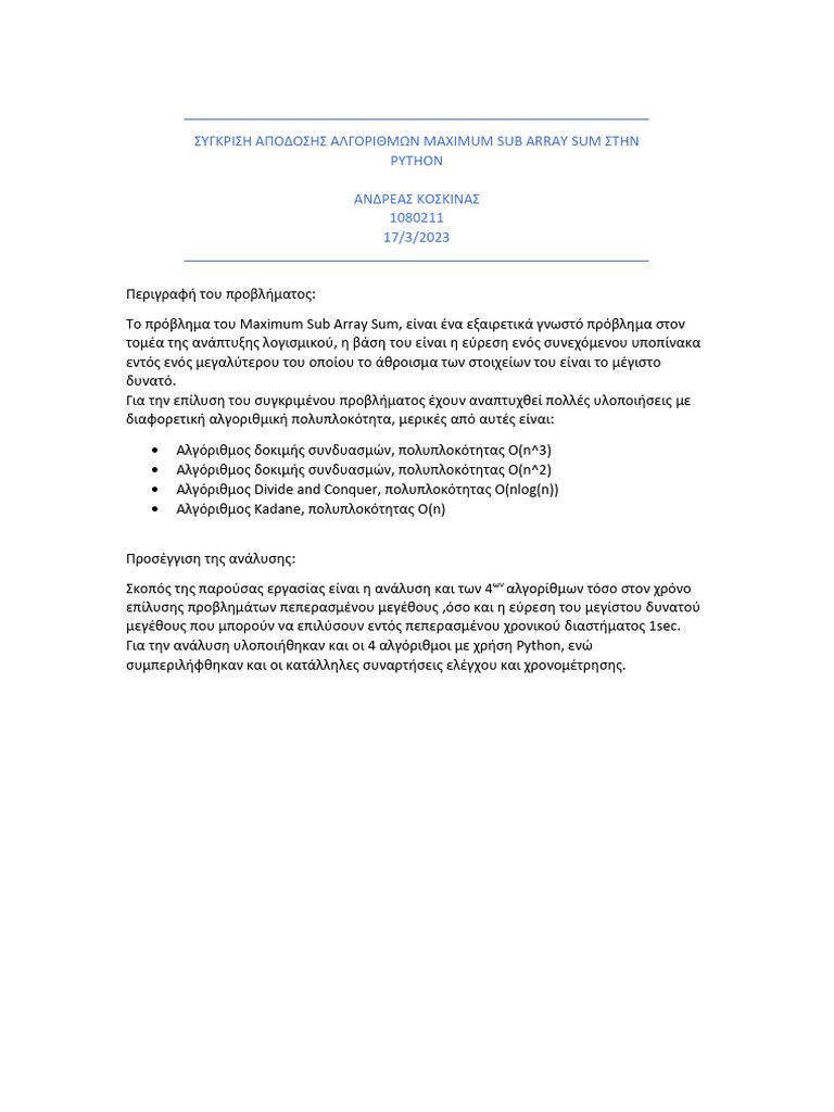 Maximum Subarray Sum in Python | PDF