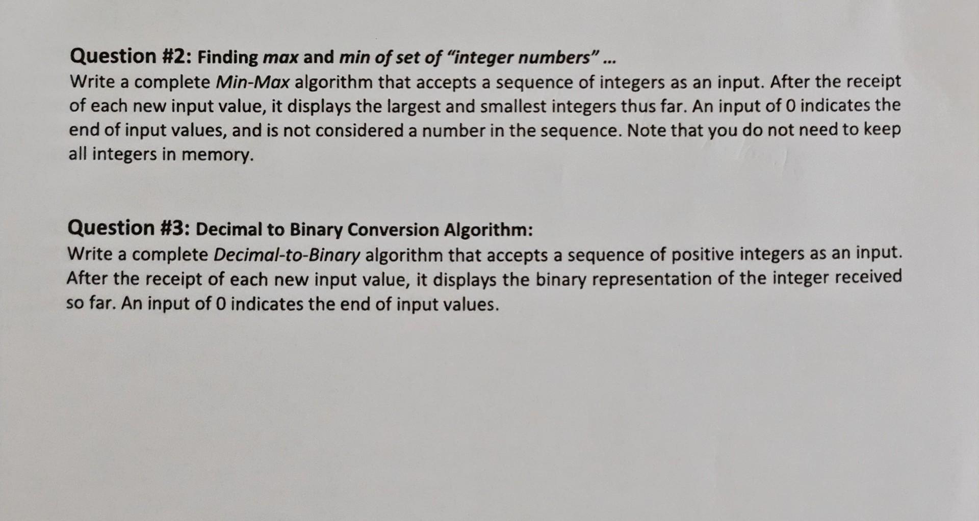 Solved Question #2: Finding max and min of set of "integer | Chegg.com