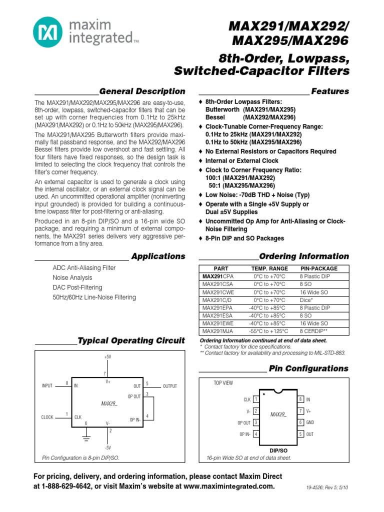 MAX291, MAX292, MAX295, MAX296 - Фильтры низких частот восьмого порядка ...