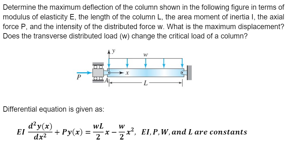 SOLVED: The deflection of a pin-ended column shown in the figure below ...