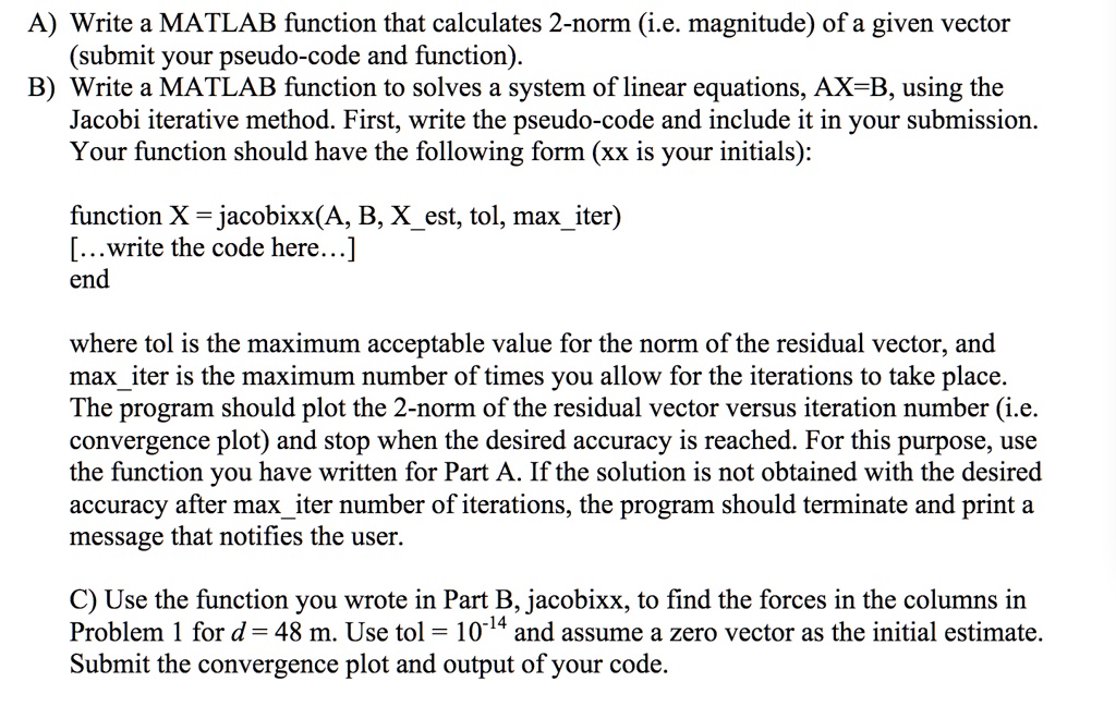 SOLVED: A) Write a MATLAB function that calculates 2-norm (i.e ...