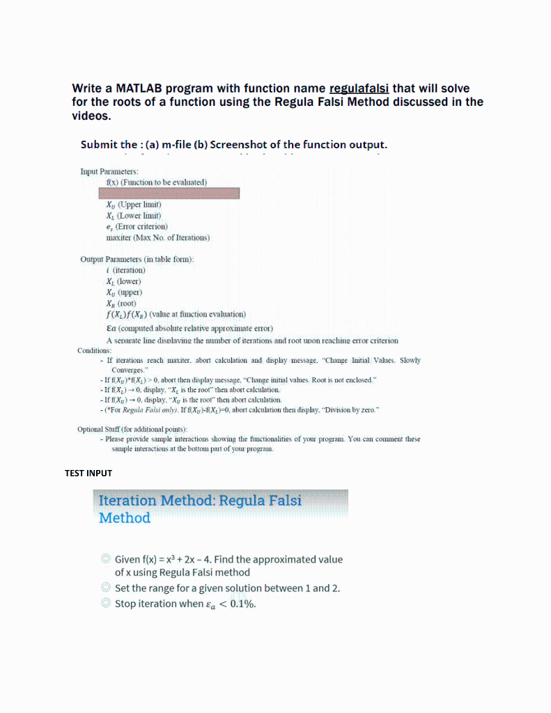 Write a MATLAB program with function name regulafalsi | Chegg.com