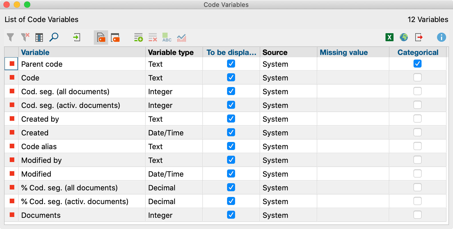 MAXQDA 2022 Online Manual: Document and Code Variables in MAXQDA