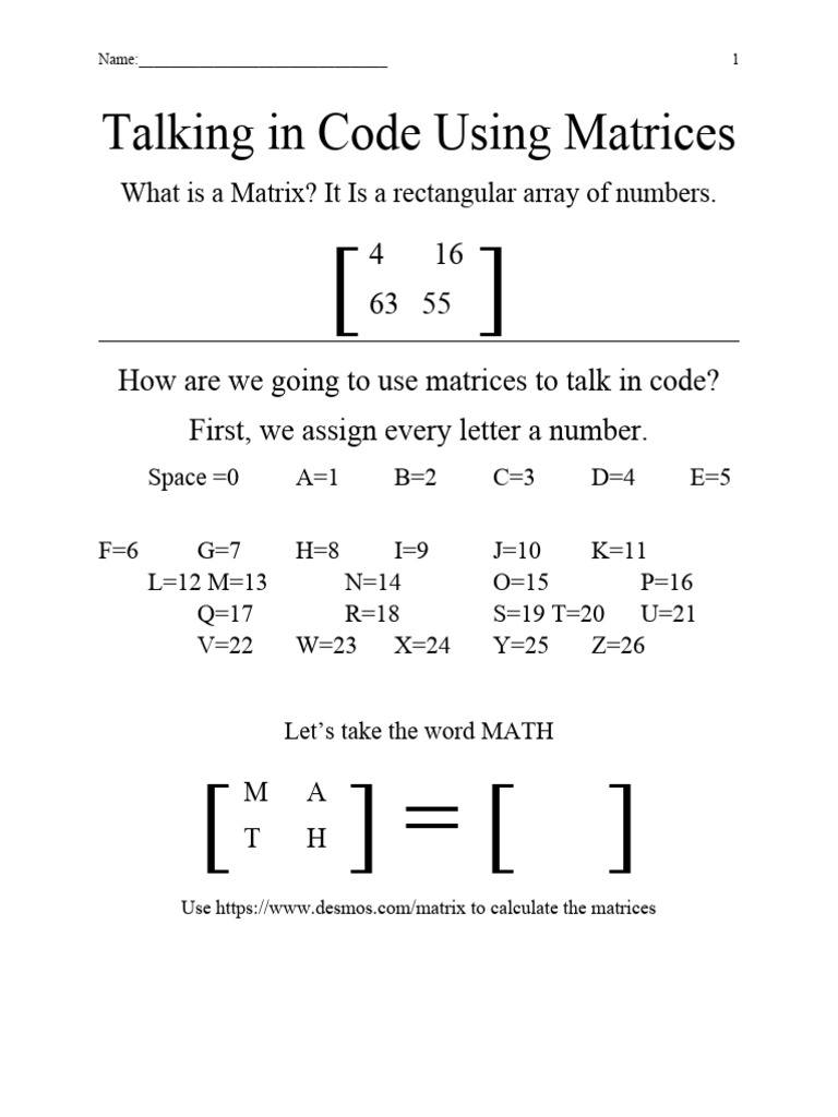 Talking in Code Using Matrices | PDF | Matrix (Mathematics) | Operator ...