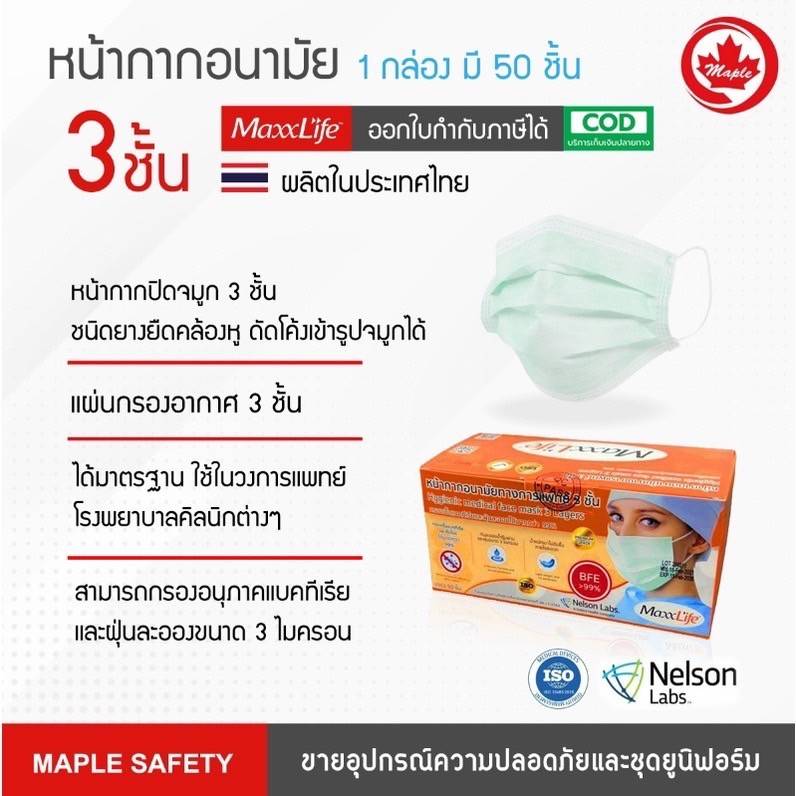แม็กไลฟ์ หน้ากาก อนามัย 3 ชั้น Maxxlife Mask 3 Layers 50 ชิ้น มีให้ ...