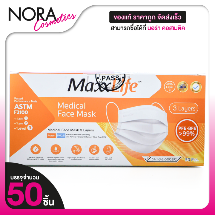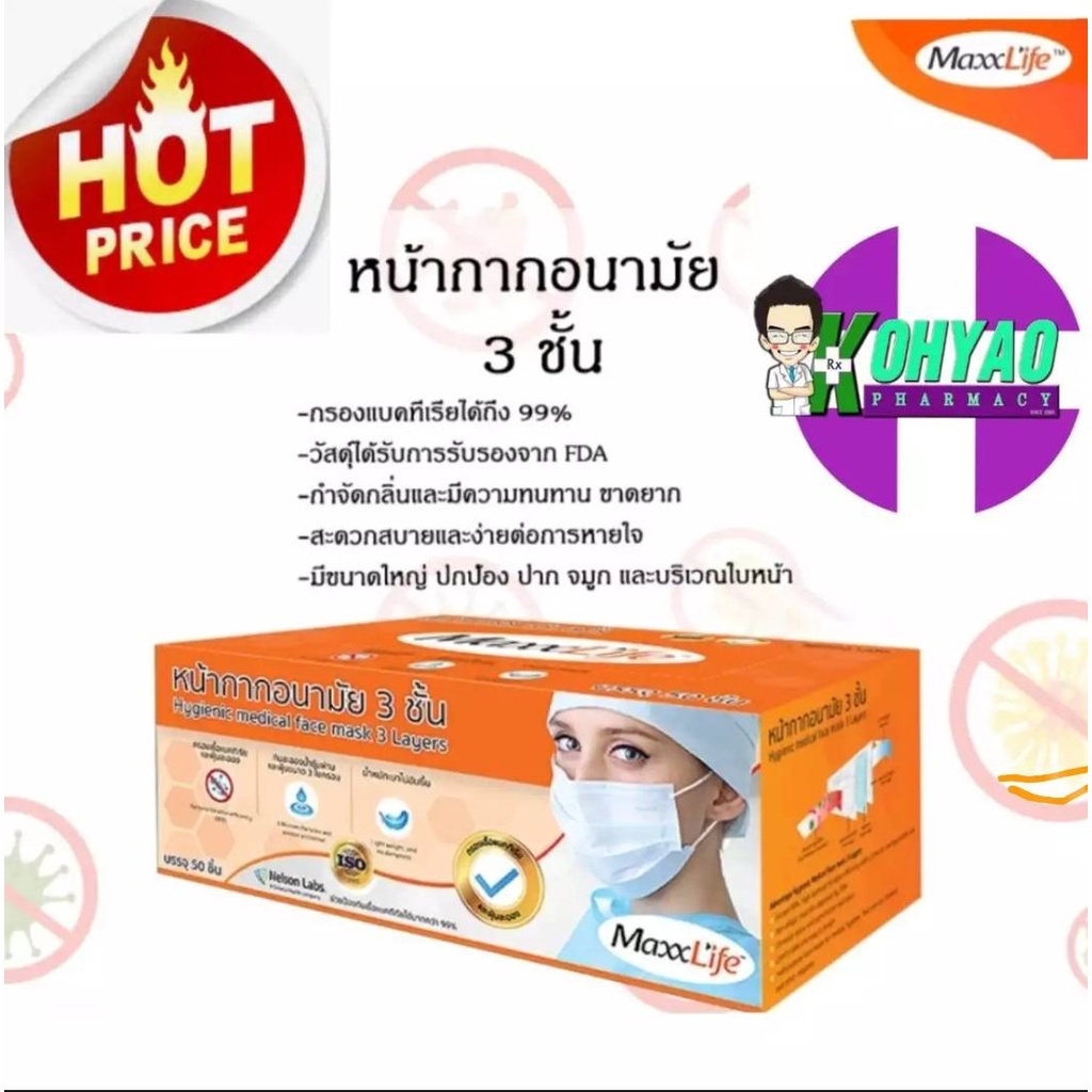 แม็กไลฟ์ หน้ากาก อนามัย 3 ชั้น Maxxlife Mask 3 Layers 50 ชิ้น | Shopee ...