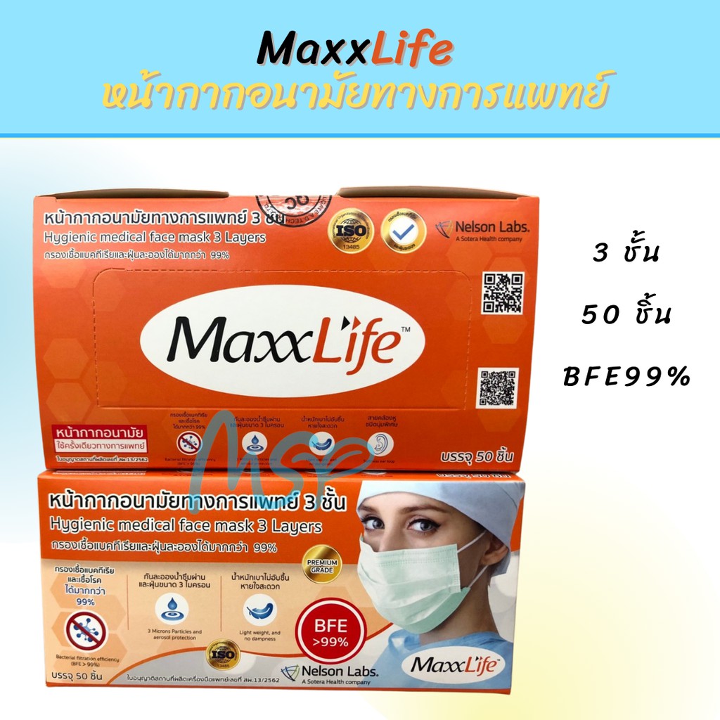 Maxxlife Mask หน้ากากอนามัย ทางการแพทย์ หน้ากาก ปิดจมูก 3 ชั้น | Shopee ...