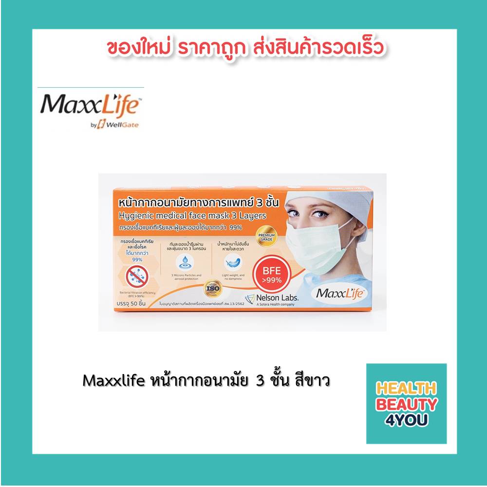 หน้ากากอนามัยทางการแพทย์ แมส ผ้าปิดปาก แม็กซ์ไลฟ์ MaxxLife สีขาว ...