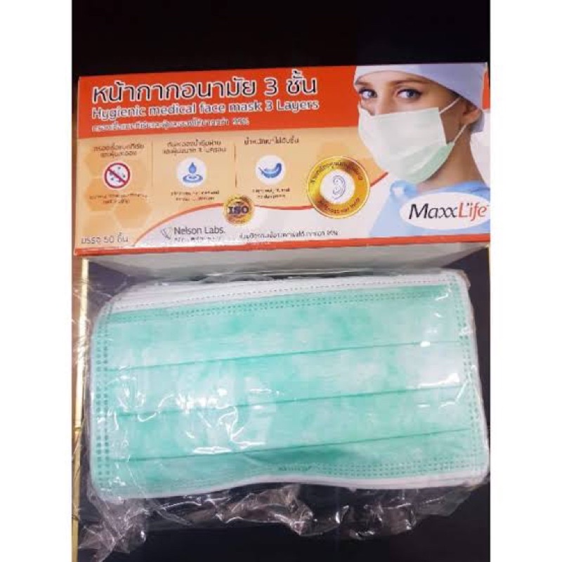แม็กไลฟ์ หน้ากาก อนามัย 3 ชั้น (สีเขียว) Maxxlife Mask 3 Layers 50 ชิ้น ...