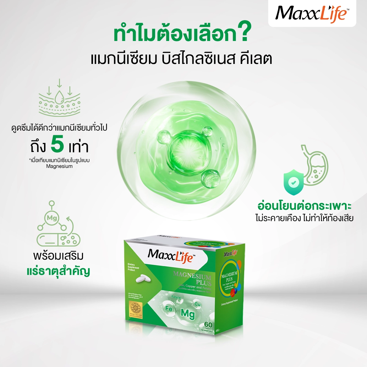 MaxxLife Magnesium Plus | ลดไมเกรน ช่วยนอนหลับ ป้องกันตะคริว