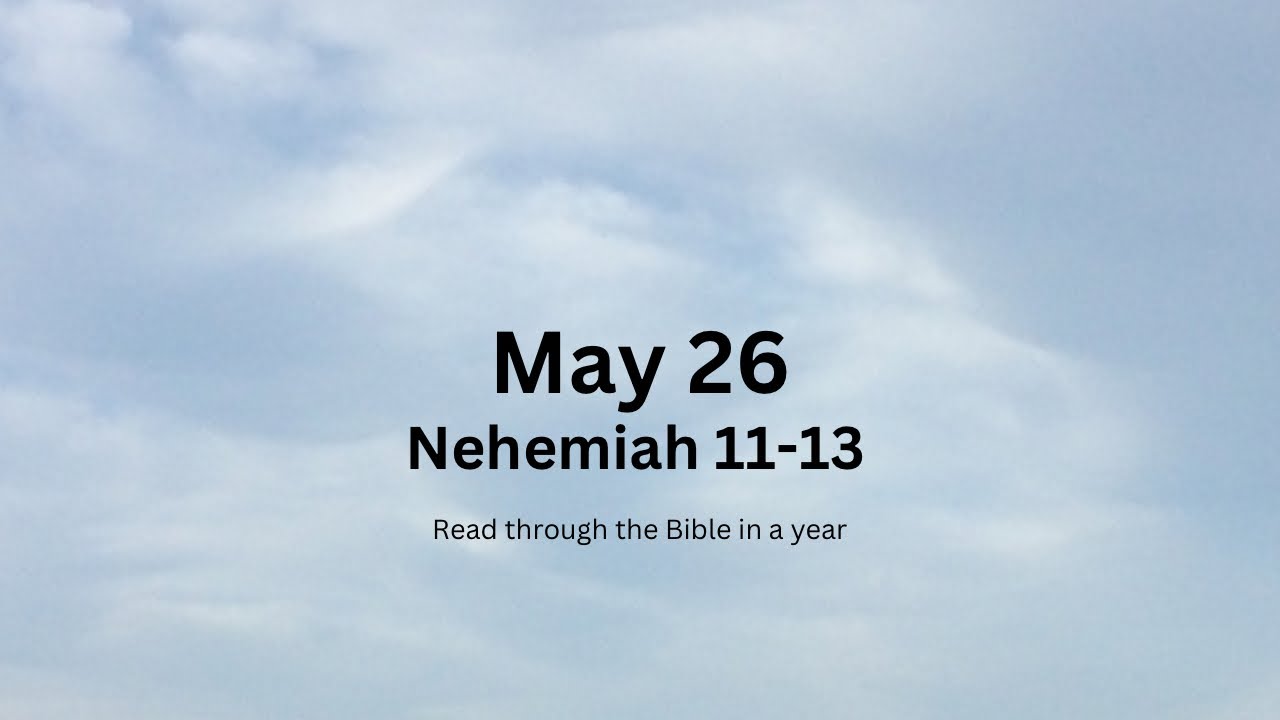May 26: Nehemiah 11-13 Read through the Bible in a Year - YouTube