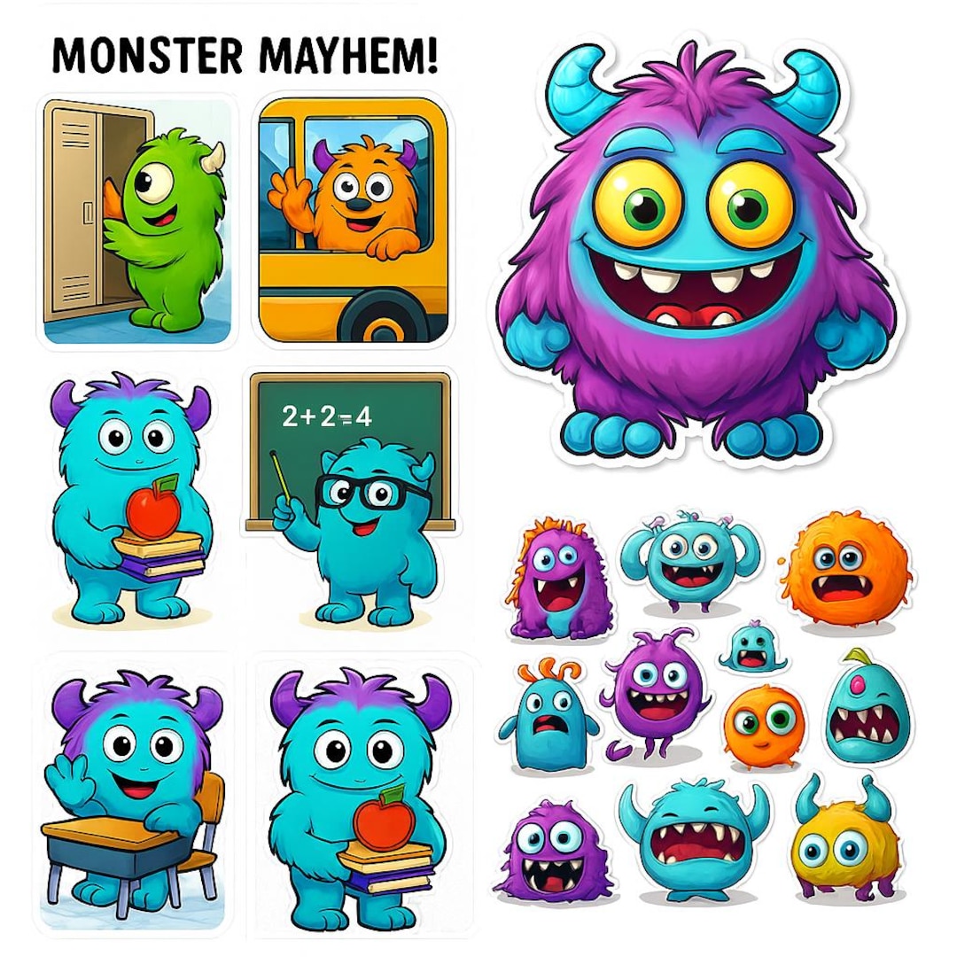 Monster Mayhem Sticker & Clipart Pack – Halloween Printable Stickers ...