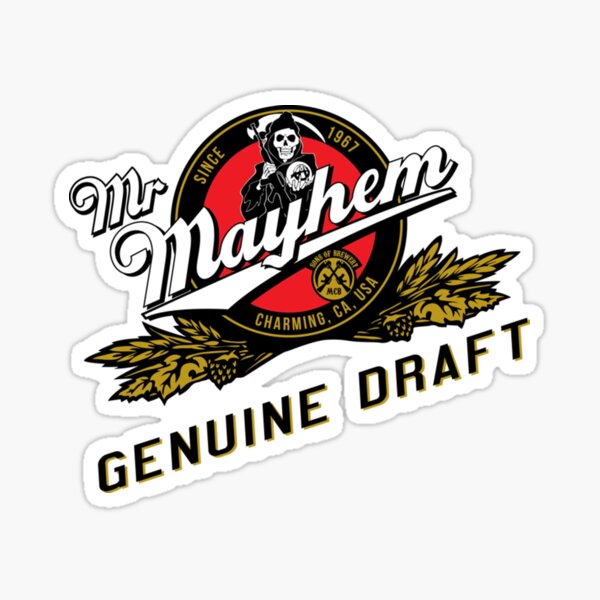 "Mr. Mayhem Genuine Draft" Sticker by AmfiqreShop | Redbubble