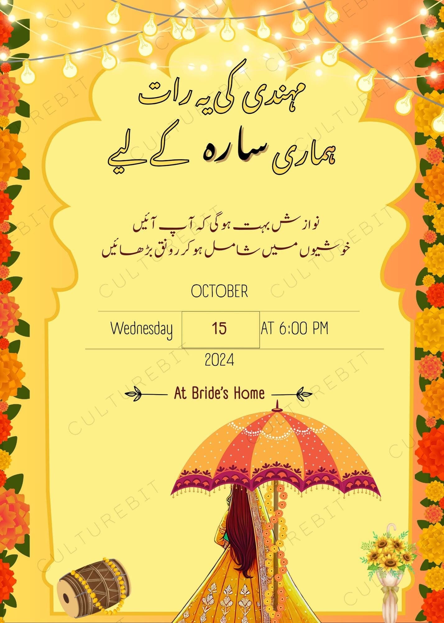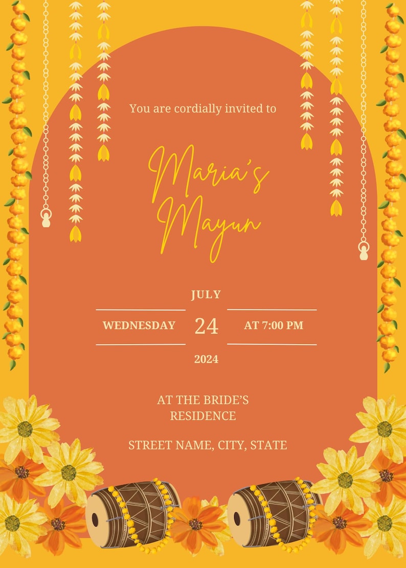 Marigold Mayoun Invitation Template, Mayoun Invite, Dholki Invitation ...