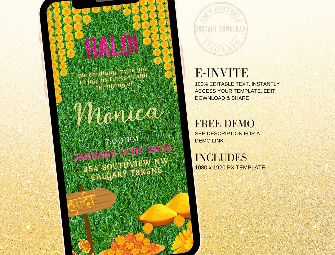 Haldi Invitation for Your Haldi Event, Customizable Haldi Invite for ...