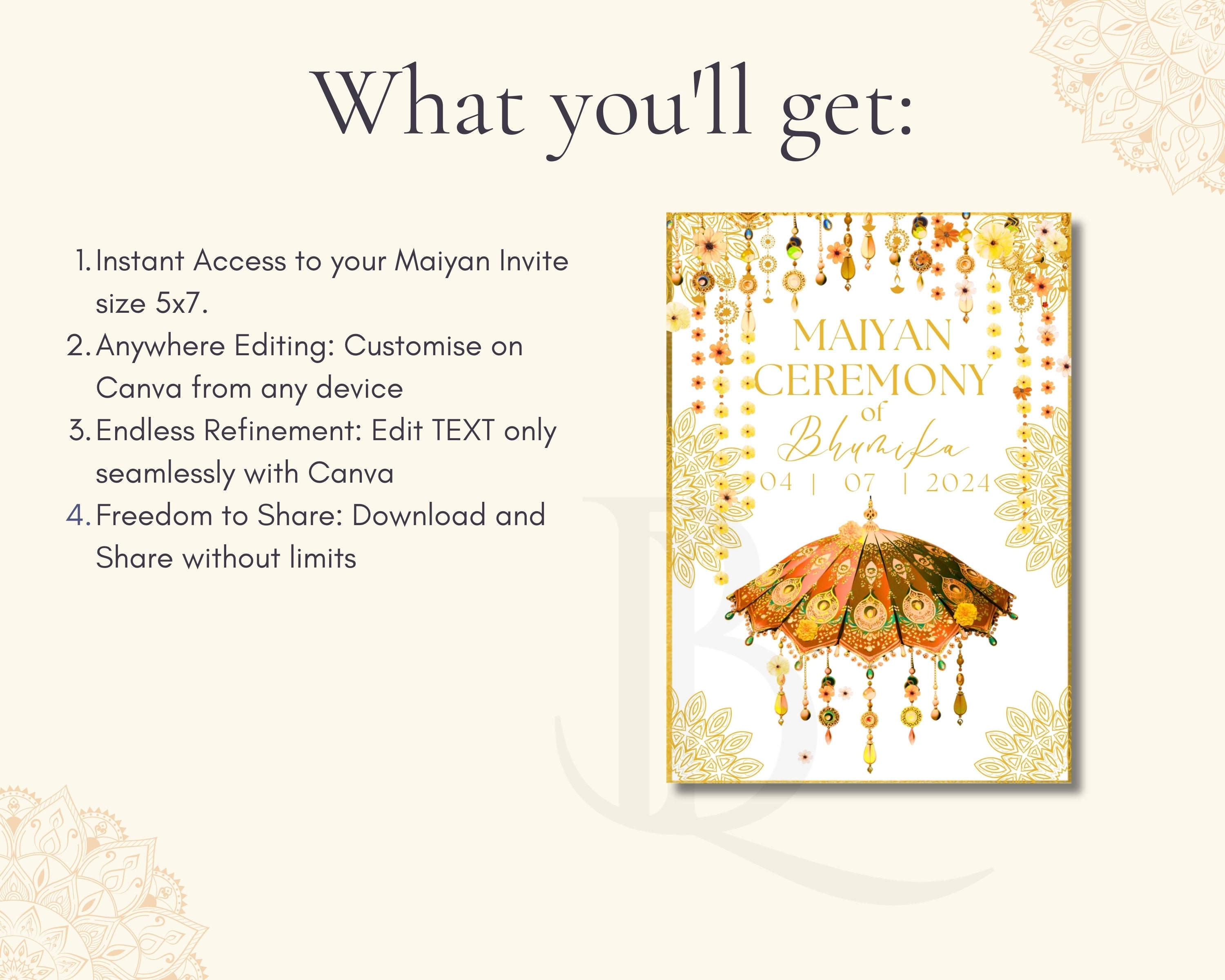 Digital Mehndi Invitation Template Canva Editable Haldi Invite Mayoon ...