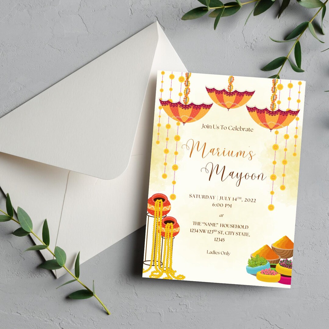 Mayoun Invite Template for Indian Pakistani Mayan Party | Beautiful ...