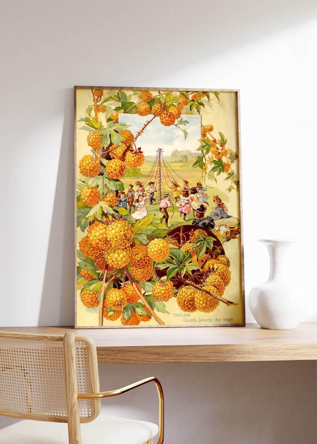 Golden Japanese May Berry Poster, Berries Print, Vintage Plant ...