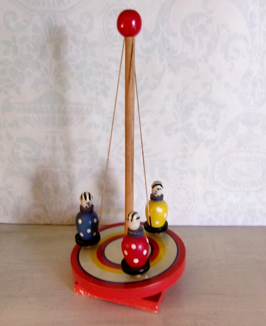 VINTAGE CAROUSEL MAY Pole Painted Wooden Spinning Tilt Toy 3 Clowns ...