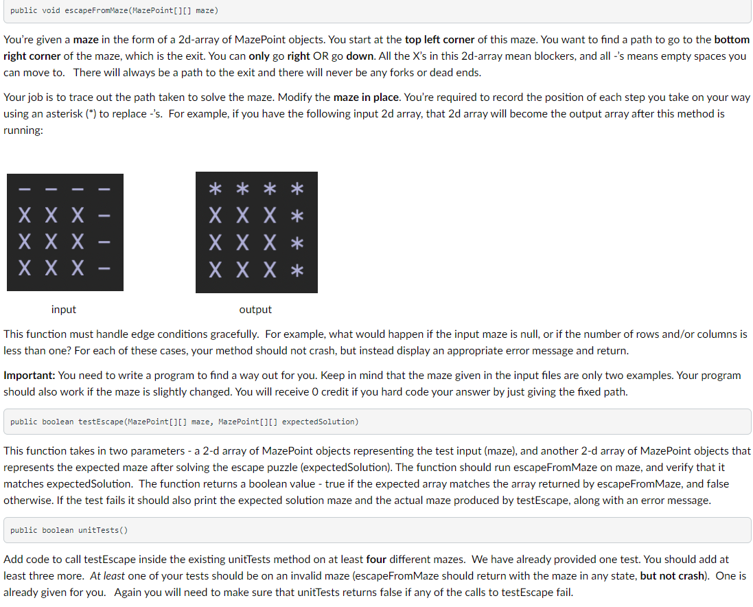 Solved Escaping a Maze - JAVA ****public class maze | Chegg.com