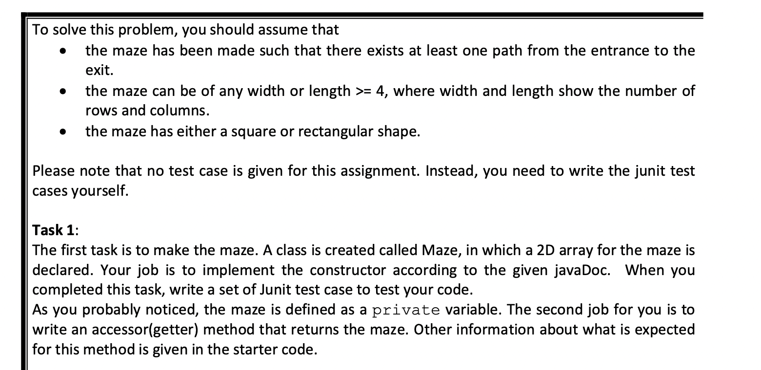 Solved Design an algorithm IN JAVA that generates a maze | Chegg.com