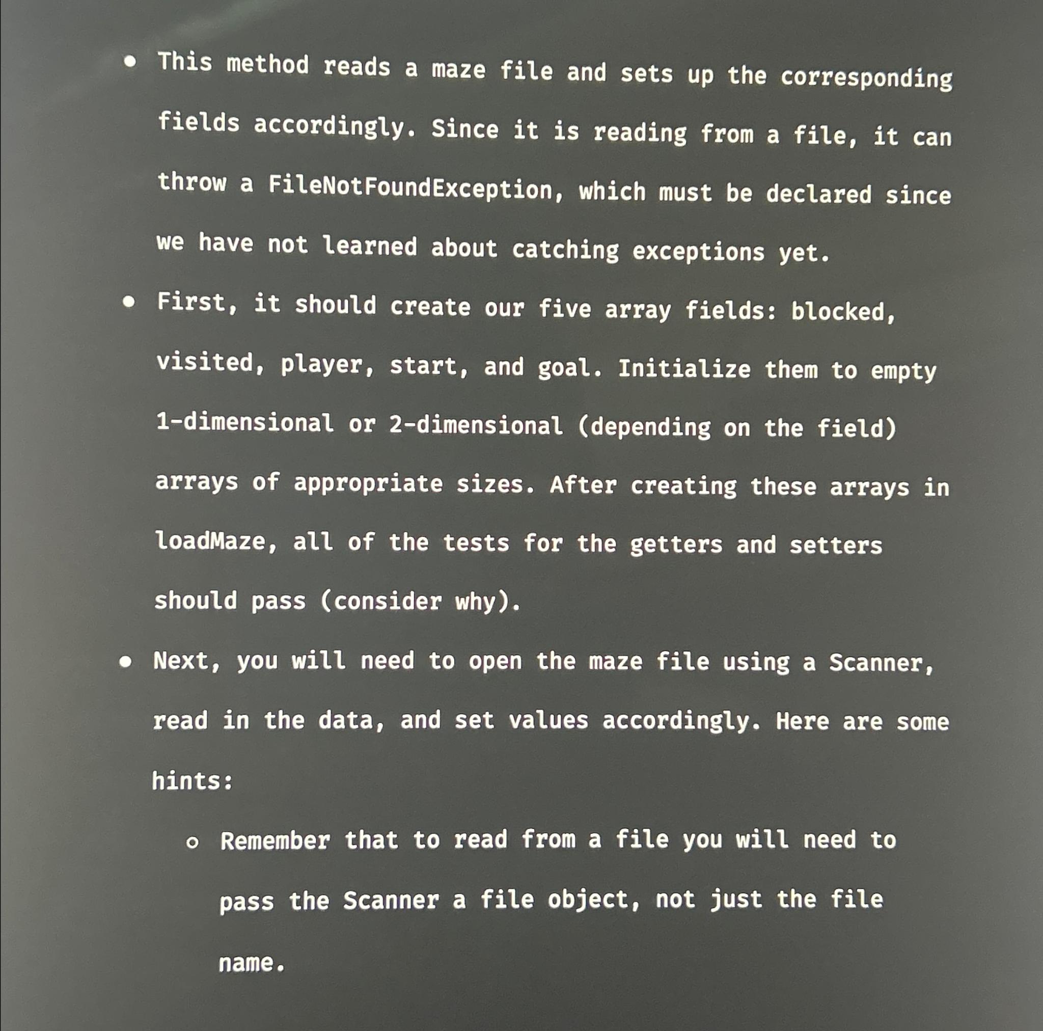 Solved This method reads a maze file and sets up the | Chegg.com