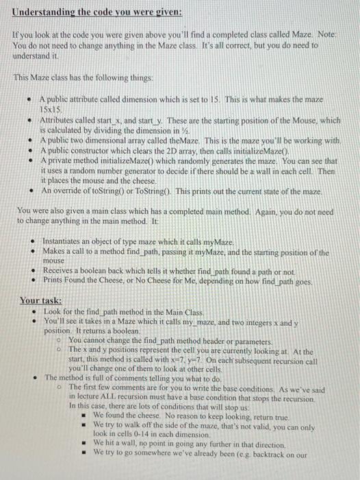 Maze class in Java. Other three classes and | Chegg.com