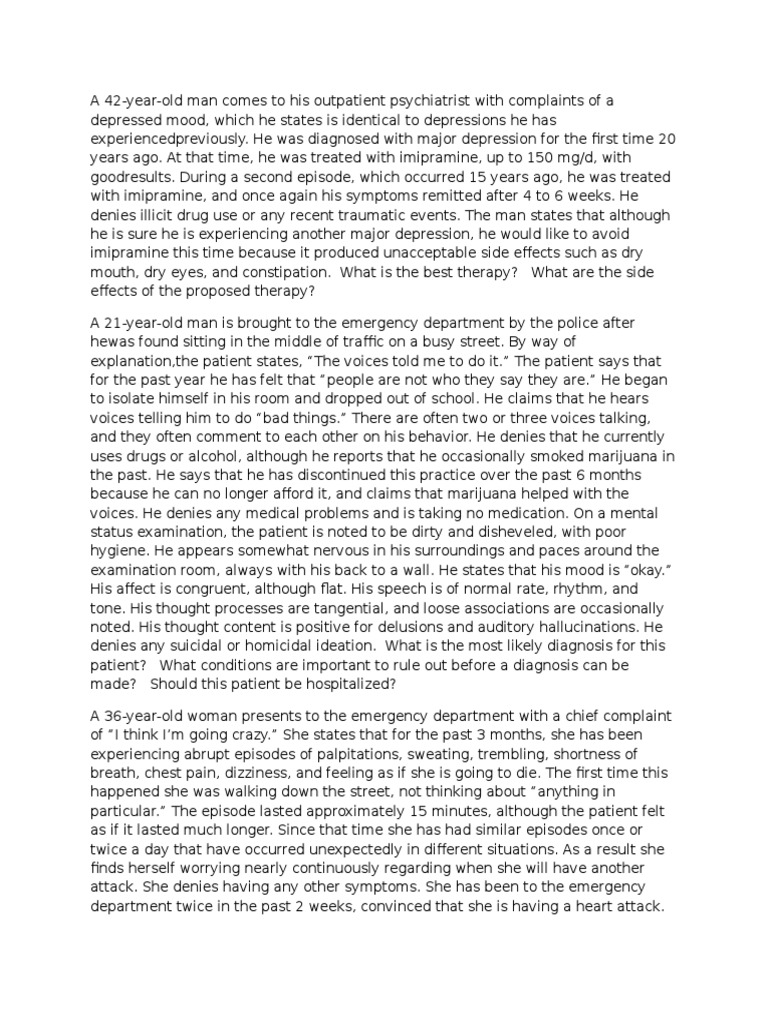 Case study Interactive Activity Major Depressive Disorder - Example ...