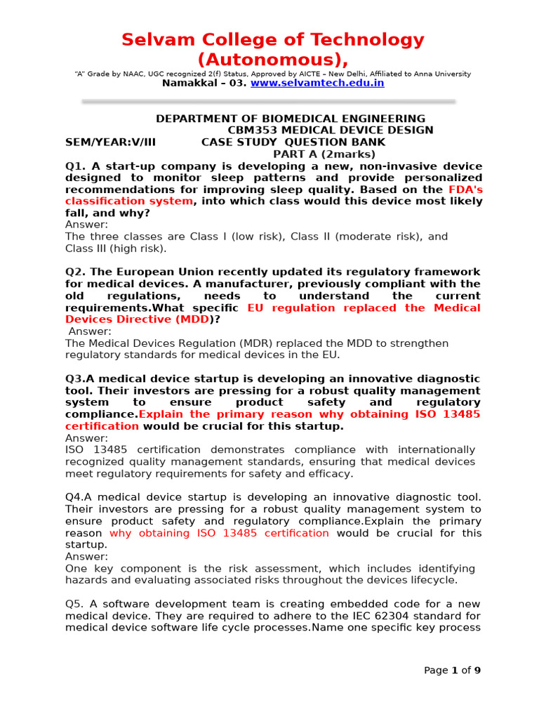 Cbm353 MDD Unit 2 Case Study Q&A | PDF | Risk Management | Medical Device