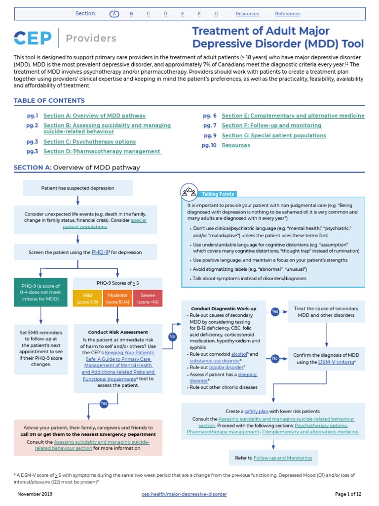 Treatment of Adult Major Depressive Disorder (MDD) Tool | PDF ...