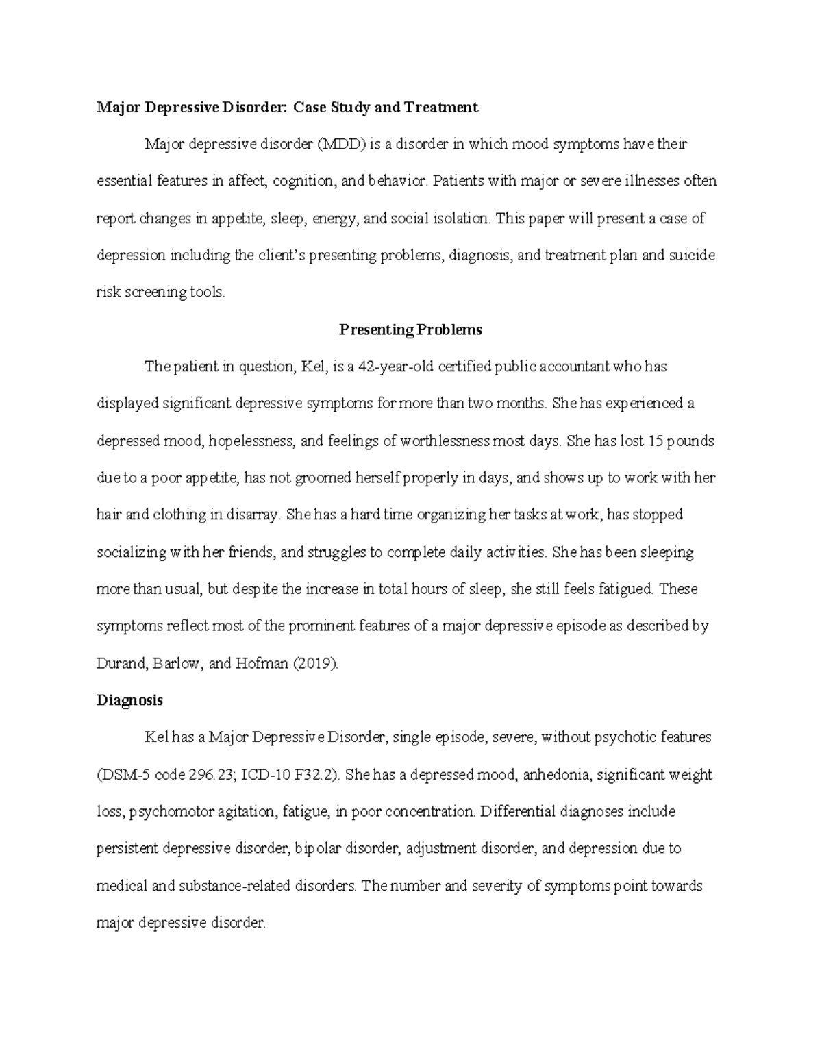 Major Depressive Disorder Case Study.docx - Major Depressive Disorder ...