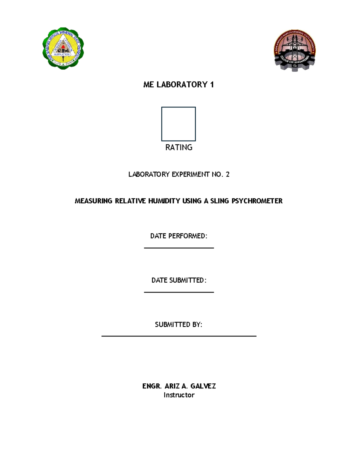 Me lab 2 psychrometer - ME LABORATORY 1 RATING LABORATORY EXPERIMENT NO ...