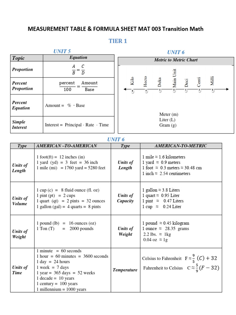 Transition Math Measurement & Formulas | PDF | Area | Polynomial