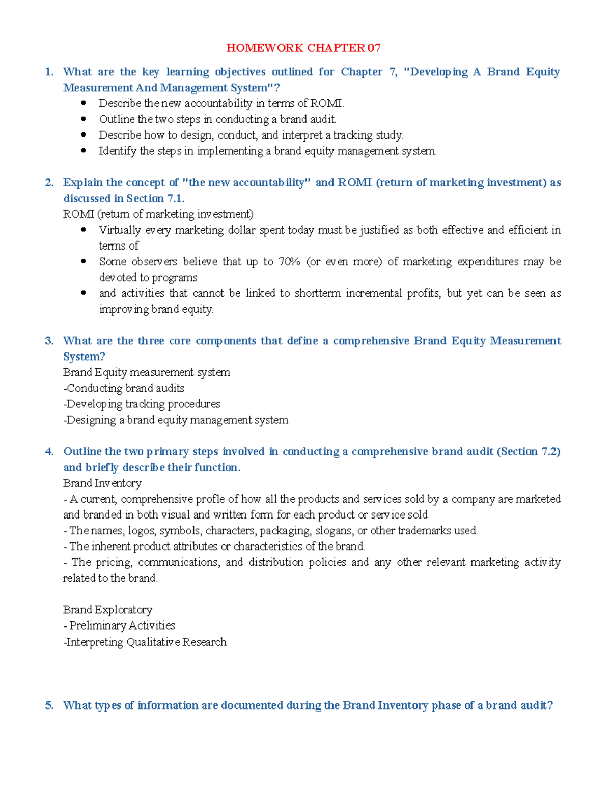 Homework CH07: Brand Equity Measurement & Management Insights - Studocu