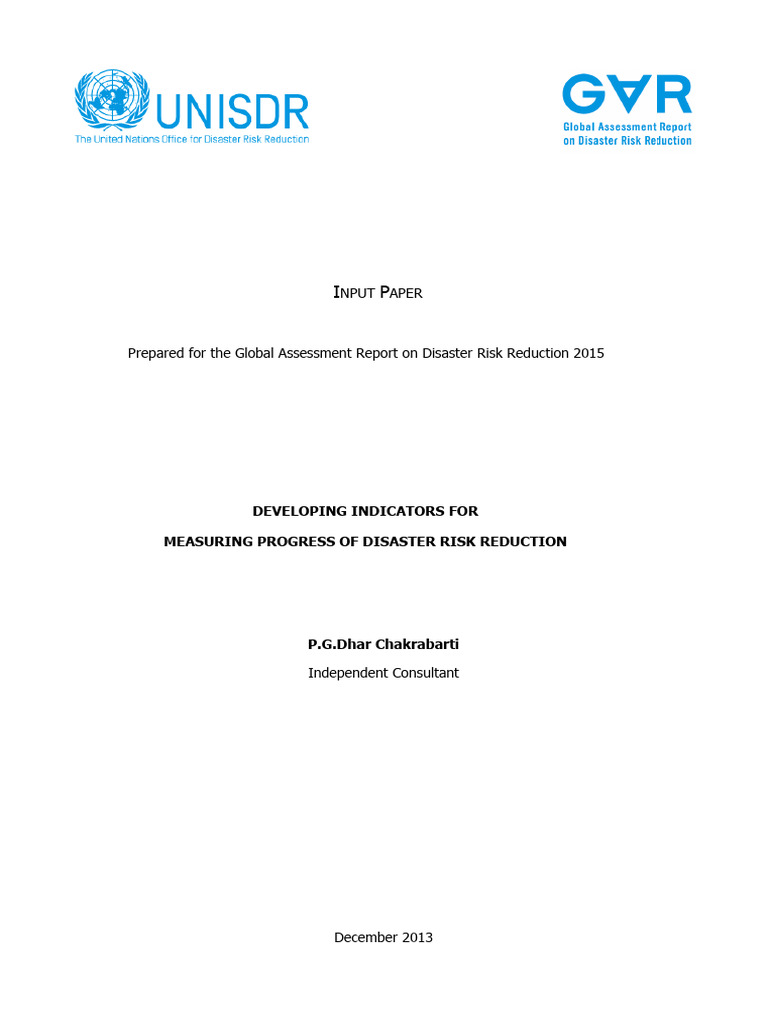cators for Measuring Progress of Disaster Risk Reduction | PDF ...