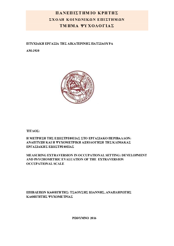 (PDF) MEASURING EXTRAVERSION IN OCCUPATIONAL SETTING: DEVELOPMENT AND ...
