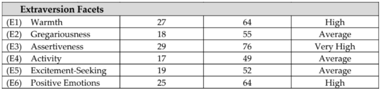 Extraversion – Facets - Sentino Personality API - Psychology NLP
