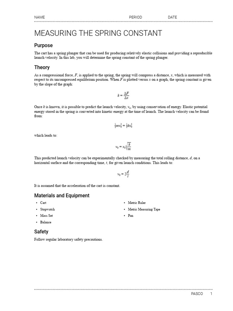 Measuring Spring Constant - S | PDF | Velocity | Mass